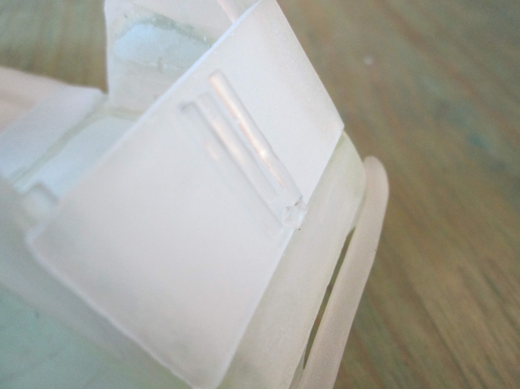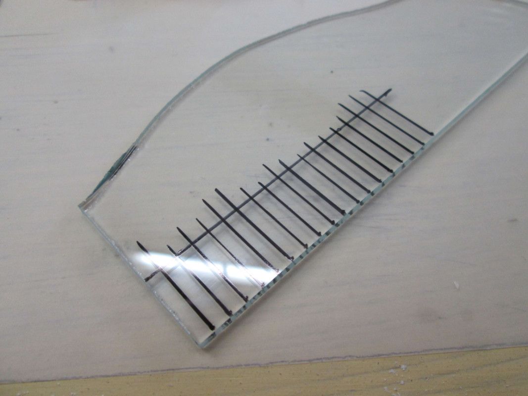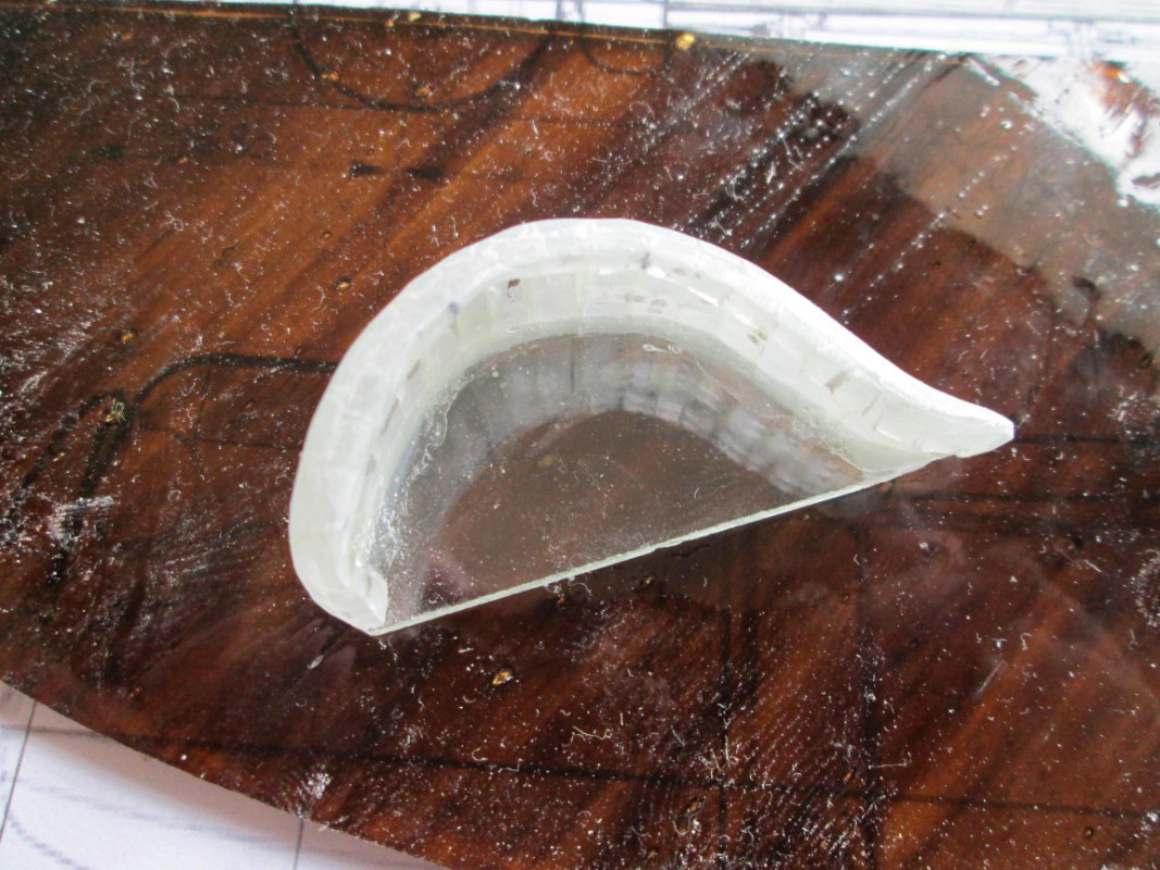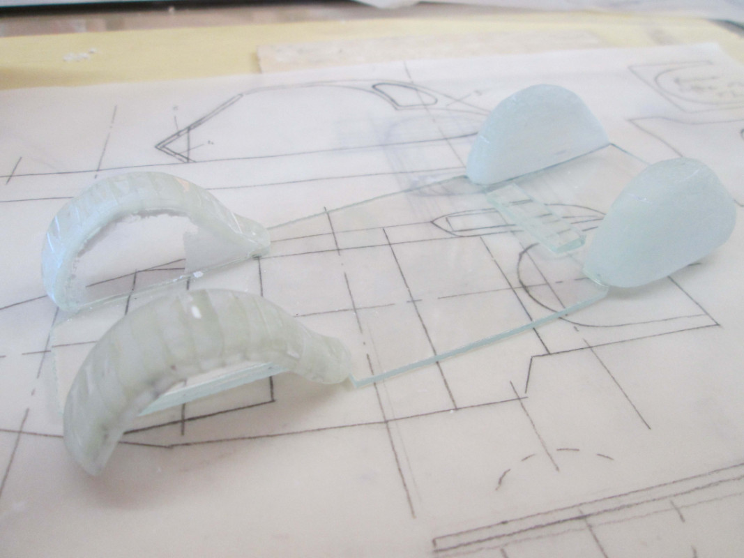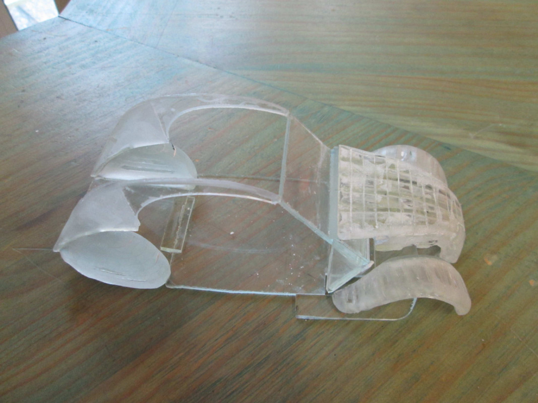 Les marques que tu vois sont le fait que les ailes avant et le capot sont fait à partir de lamelles de verre de 3m/m d’épaisseur et de 4m/m de large. pour le montage, j'ajuste les champs des lamelles entre elles et ensuite elles sont collées champ contre champ. Je me sert d'un moule en carton ...