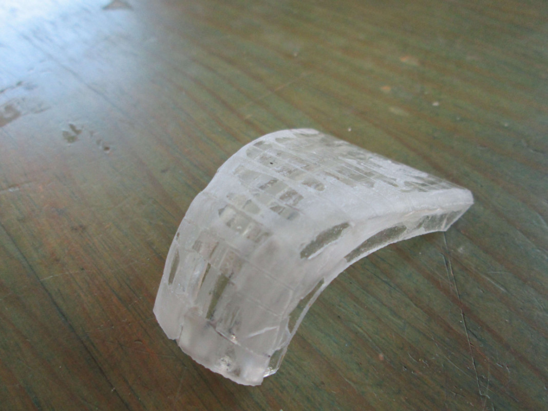 Comme le verre est transparent quand l’épaisseur et trop petite même sablé, on voit un peu a travers et c'est pour ça qu'on voit les différentes lamelles. Une particularité des du verre est de diriger la lumière (fibre optique) Si je prends une baguette de verre et que je la tords dans différents ...