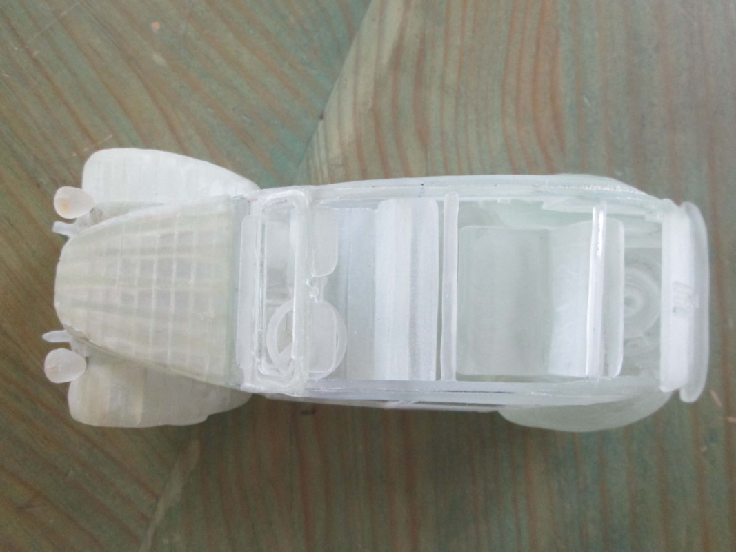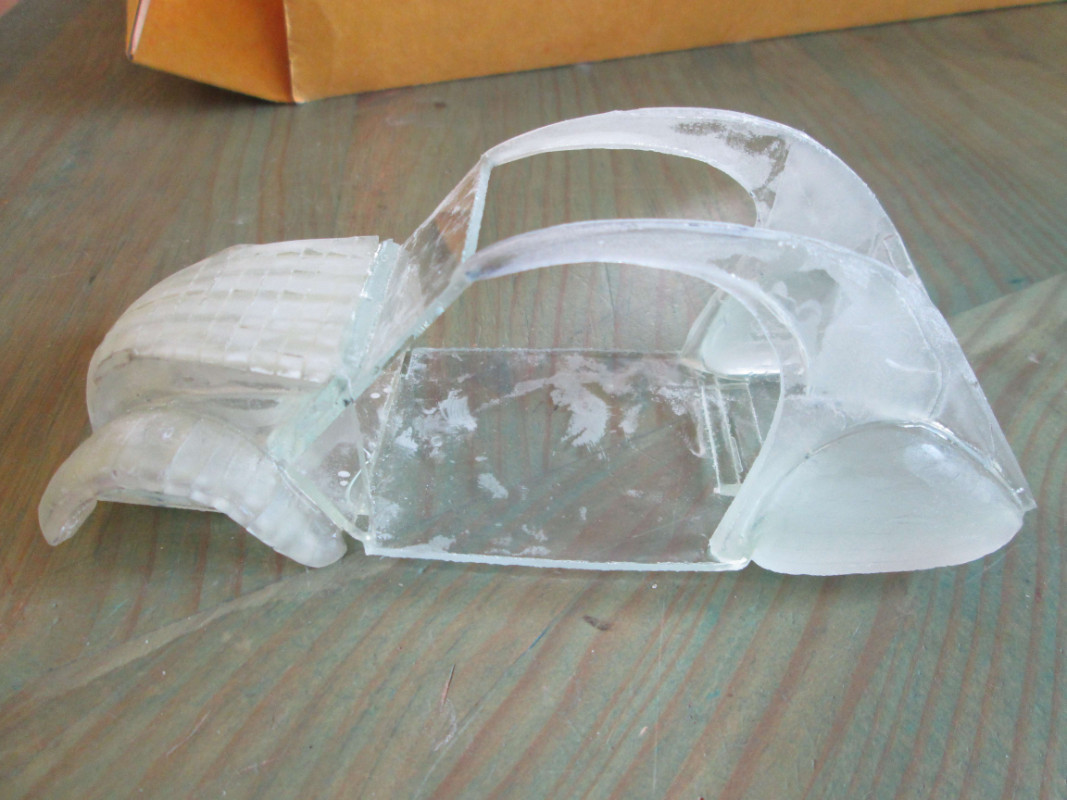 J'ai retrouvé les photos. Finalement, c'était ma première maquette en verre. je reposterai les photos de la deuche et celles des maquettes suivantes. Il m'en reste une, la maquette de ma première voiture, une 4CV découvrable, j'ai refusé de la vendre
