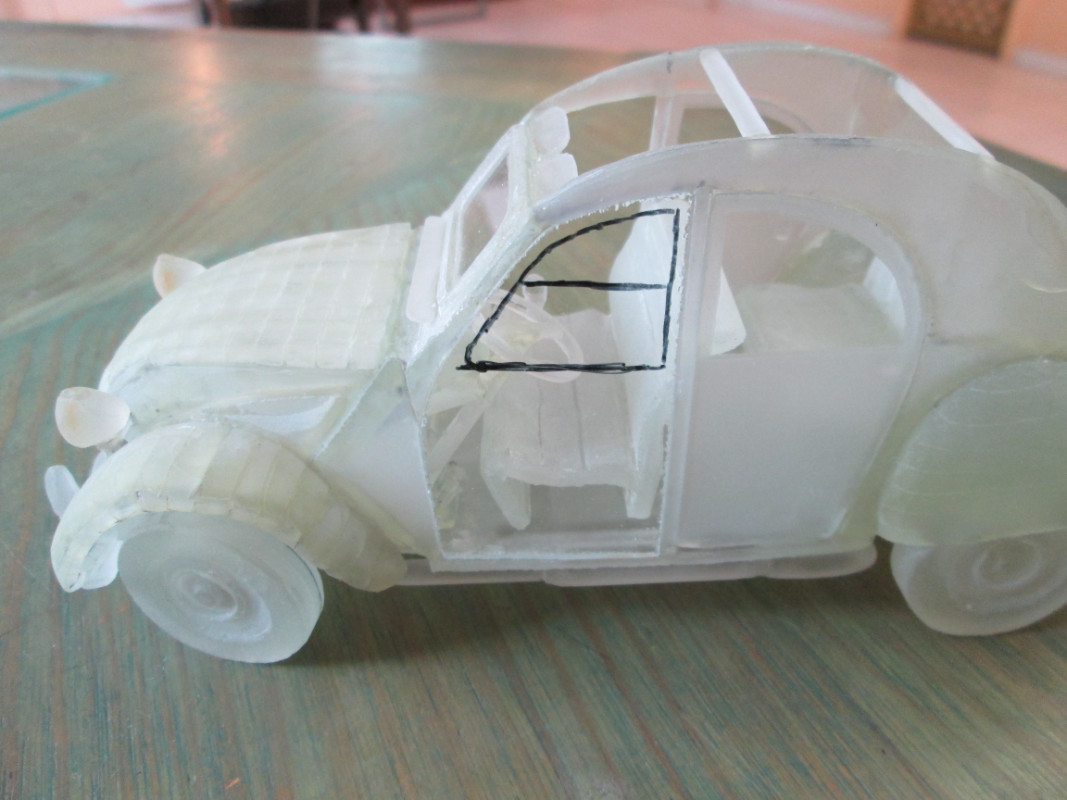 Je viens de finir la 2CV. Ce matin j'ai fait les différentes pièces (calandre, rétro, etc.....) au ...
