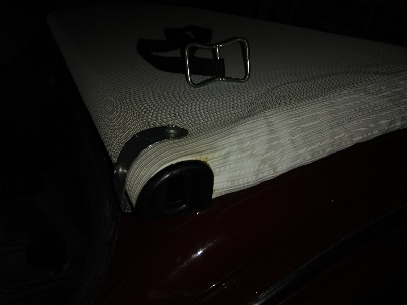 J'ai garder le système d'attaches de l'ouverture extérieure quand je roule la capote. Il faut juste éviter de trop serrer pour que les pions ne percent pas la capote (mais c'est toujours le cas avec les ...