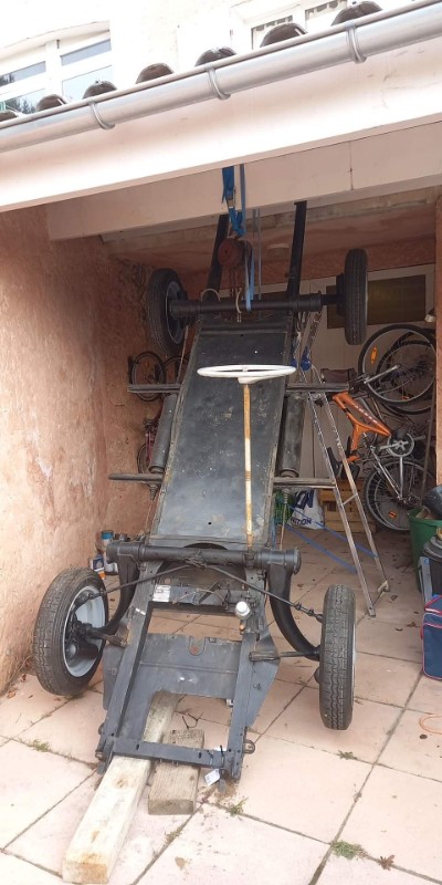 Après un démontage, j'ai traité la caisse et le châssis (qui était rempli de sable ?) et rénové les freins.