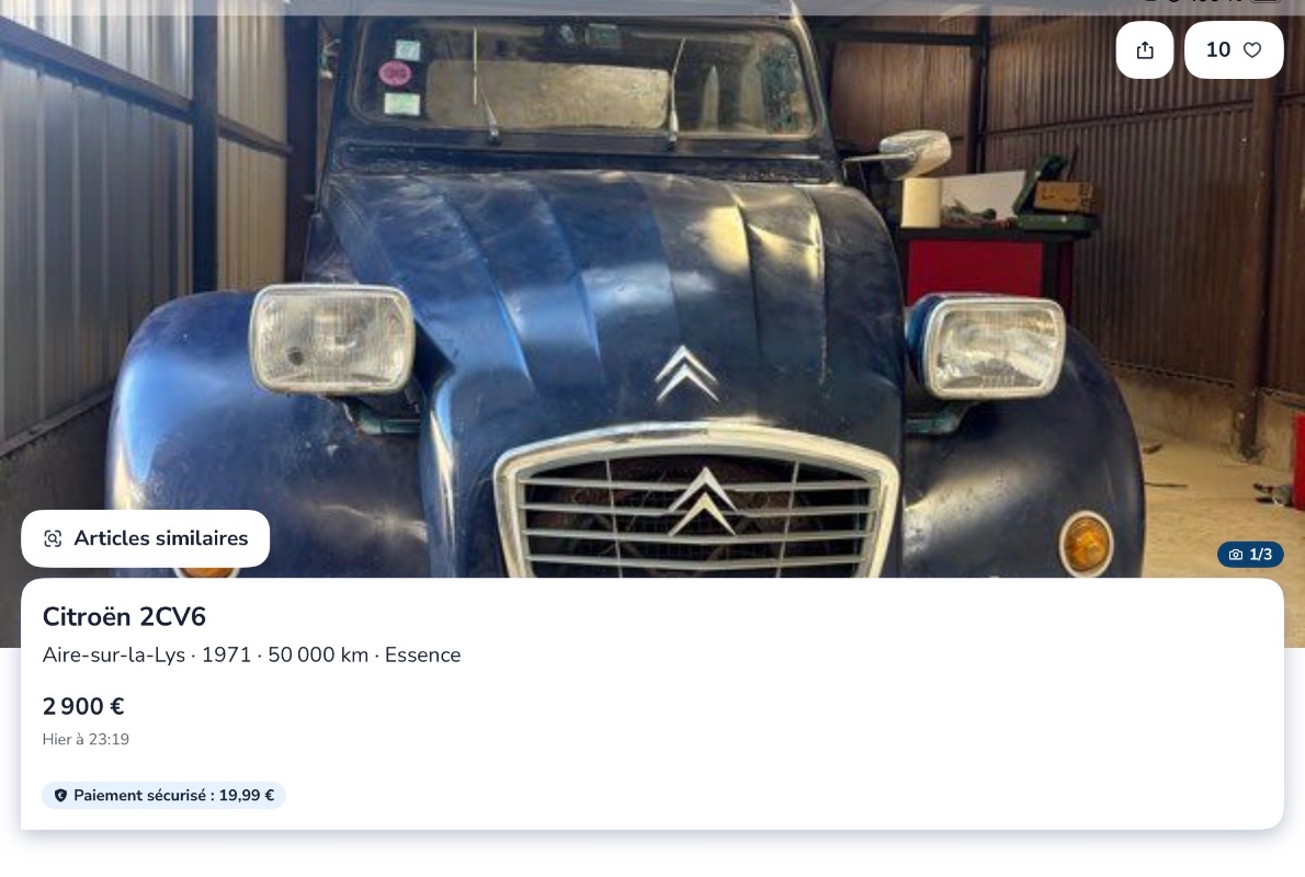 Voici une annonce intéressante que je viens de trouver sur leboncoin : https://www.leboncoin.fr/ad/voitures/3183427224
