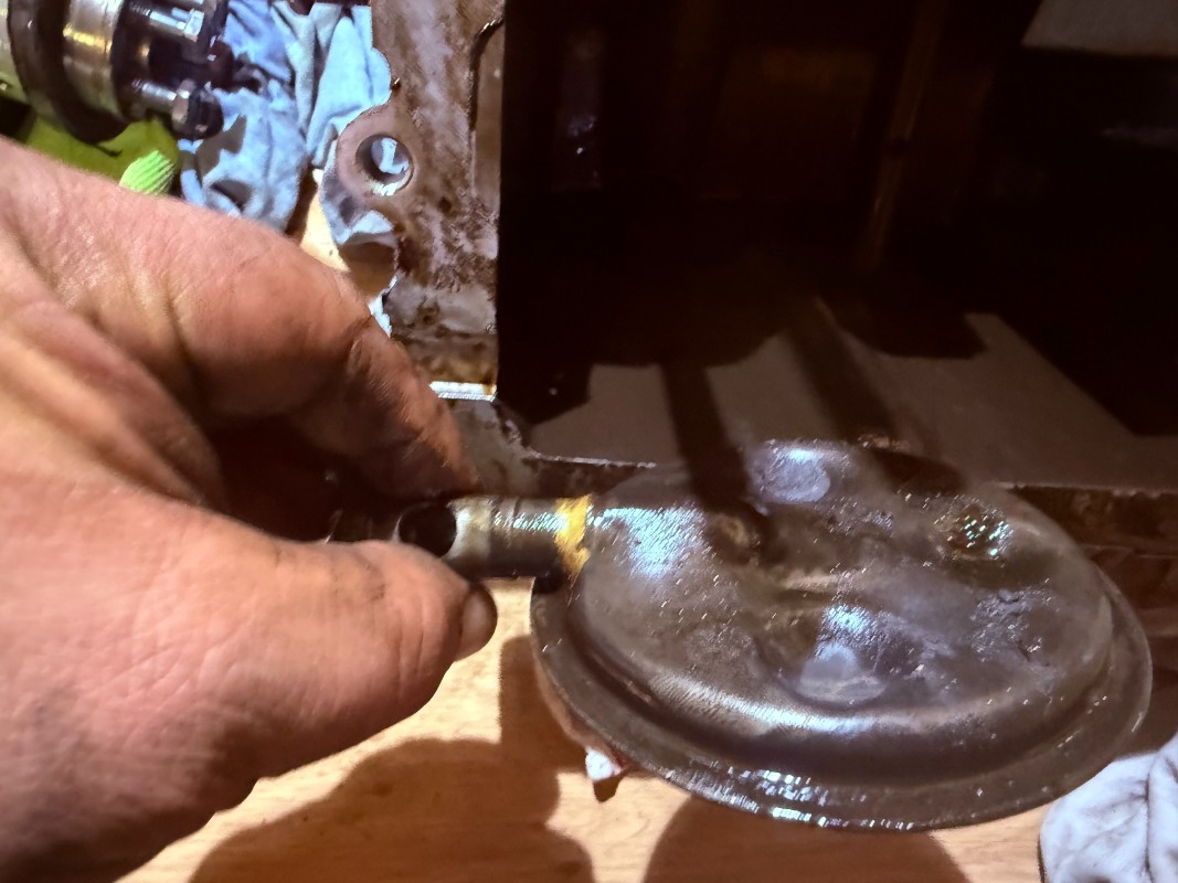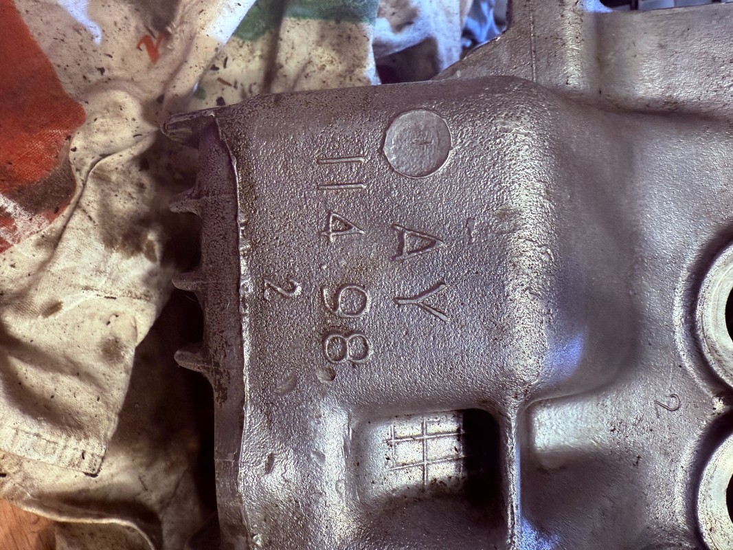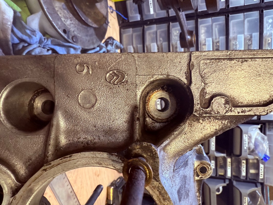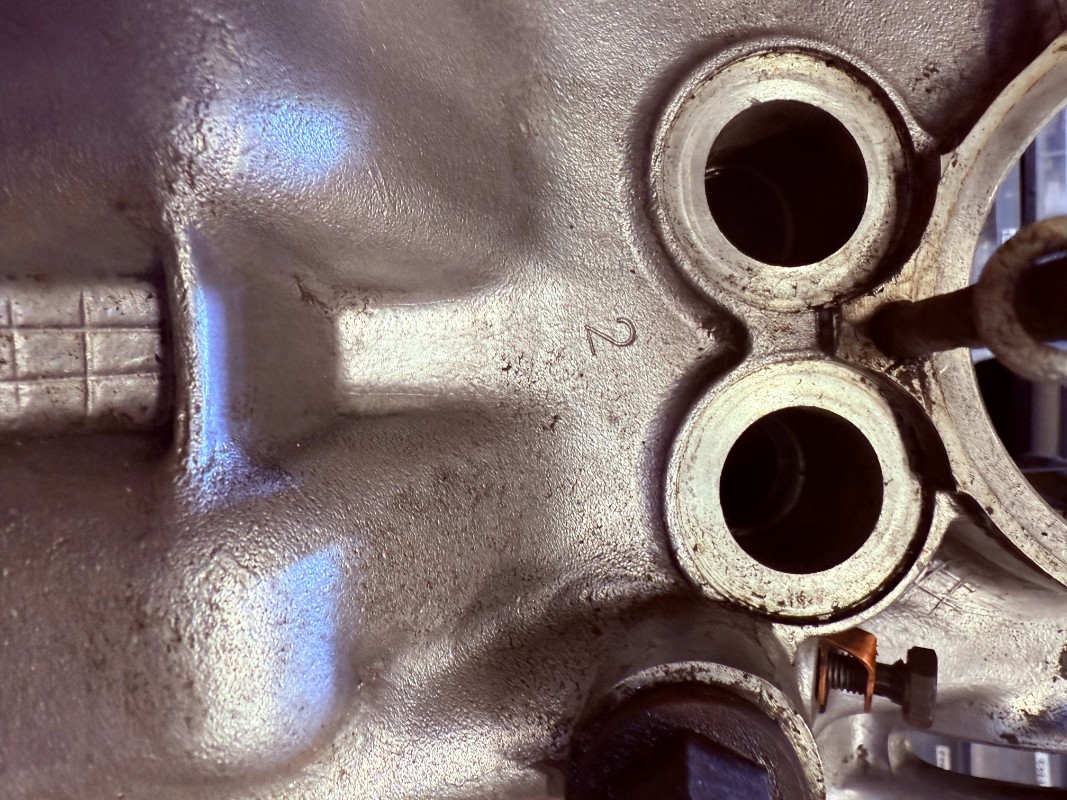 - Gros nettoyage du moteur à l’essence F : j’ai retrouvé les inscriptions du type moteur qui sont frappées non pas sur la plaque existante, mais directement sur le bloc moteur.