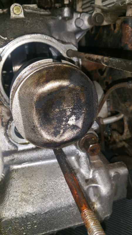 Surprise du jour Sur l'un des pistons ,les 2 premier segments sont collés et totalement compressés :o J'ai réussi à sortir celui du centre , mais le 1er aucun espace pour le chopper