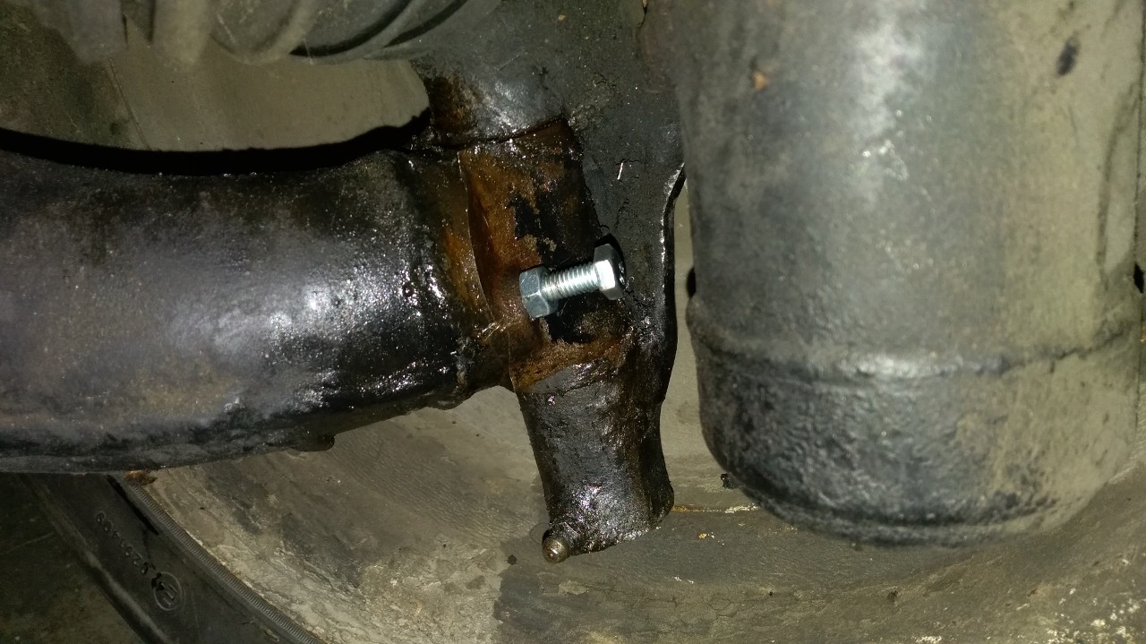 par contre en travaillant j'avais oté les 2 roues pour avoir un accès aisé, et j'ai remarqué (après avoir installé ma nouvelle vis)... qu'il y avait une vis de braquage situé de l'autre coté du bras coté gauche de la roue!!! je n'avais pas regardé de ce coté là du coup j'ai maintenant 2 vis de braquage...