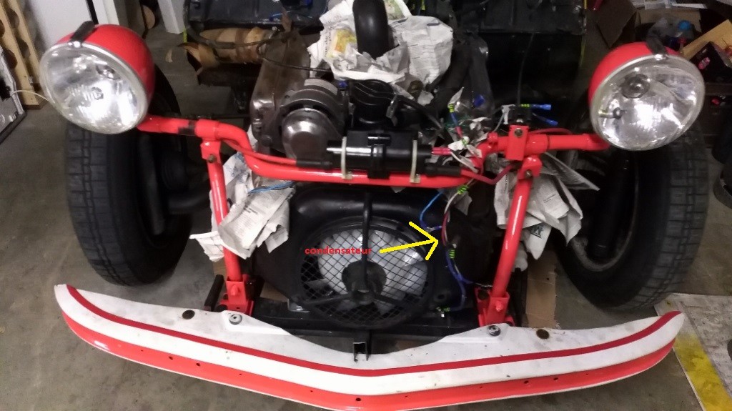 Je ne me rends pas bien compte, mais je pense qu'on ne devrait pas y avoir de problème de fonte et d'écoulement de la colle sous le capot, car, avant d'avoir un 83°ou 90° sous le capot, à moins d'un été torride ou + au sud de la France ... Voire si stationnement prolongé sur un parking au soleil et en période de canicule ... Ça je ne sais pas :???: Et aussi le condensateur est installé à l'avant du moteur.