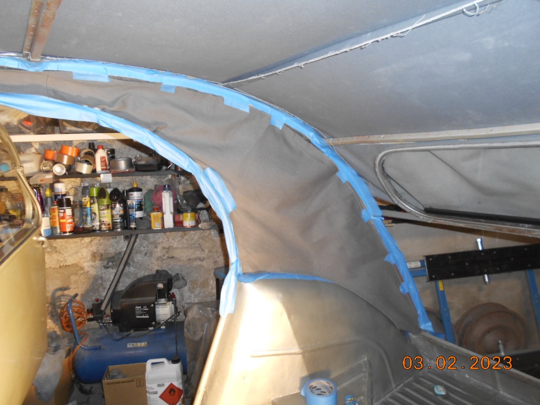 Ai aussi attaqué le tissu de custodes !! Pas facile à mettre en place !!