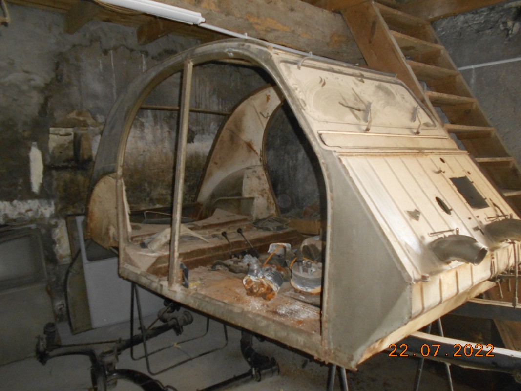 La voiture est en pièces détachées ce qui rend le projet aléatoire, car j'espère que mon vendeur a rangé comme il faut les vis et pièces, par contre elle est complète avec toutes ses portes, toutes ses ailes et capot mécano-soudés si rares et surtout si chers (1000€ une aile avant).