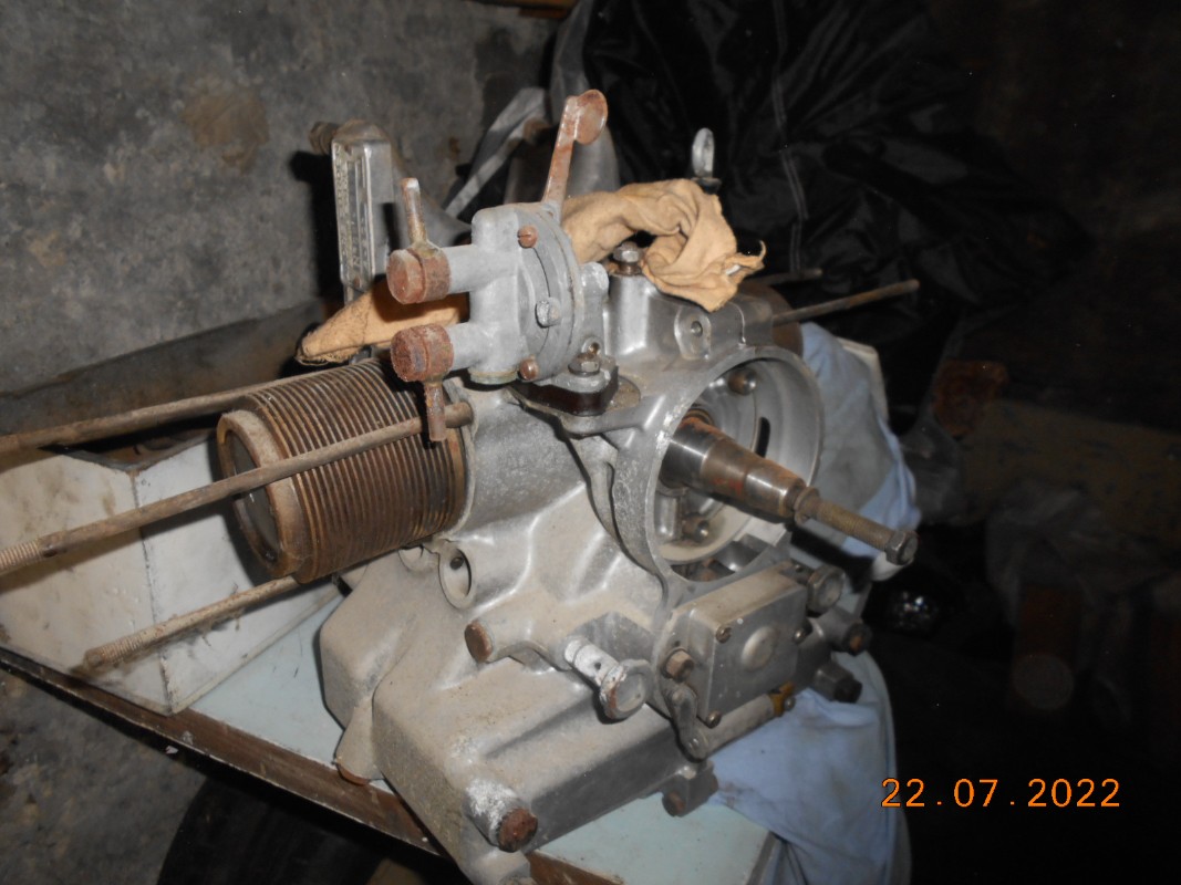 Boite et moteur (type QB) sont présents, avec collecteur, carbu, filtre à air ventilo (8pales introuvable) en plus plein de pièces détachées accumulées pendant une trentaine d'années