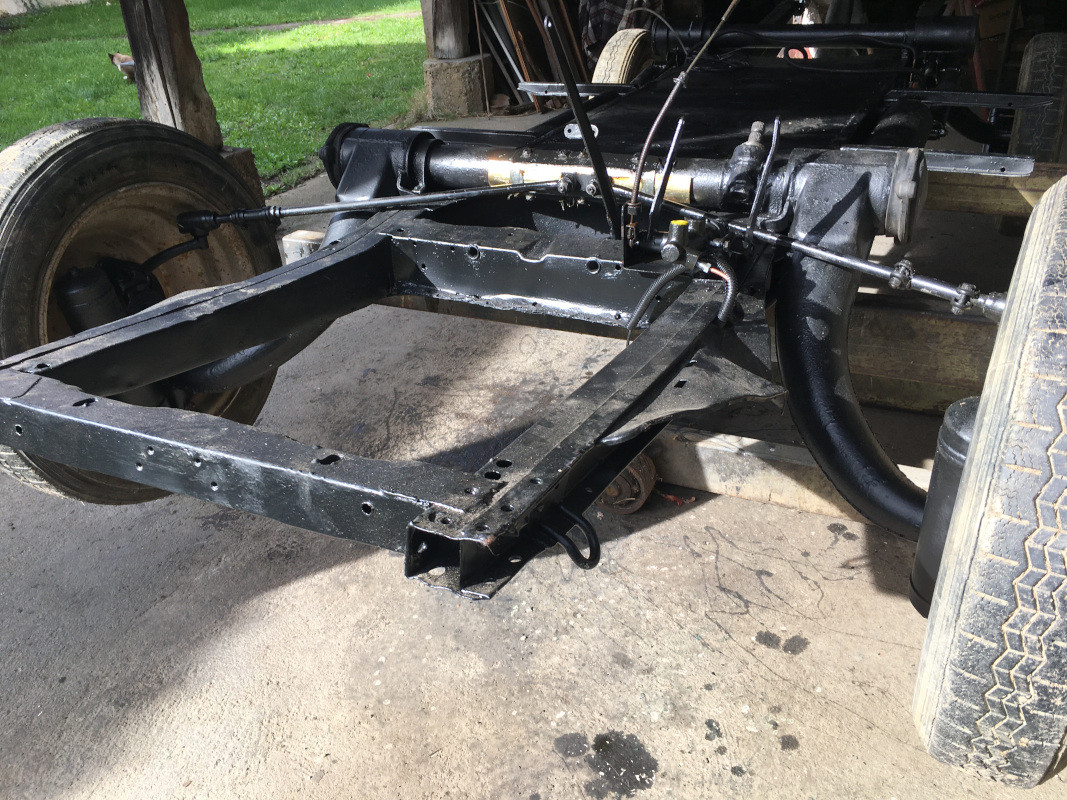 Ce matin, j'ai monté les mâchoires de freins neuves, j'ai reconditionné et posé les cylindres de roues, (présence de rondelles expansives sous les coupelles que je n'avais jamais constatée !), nettoyé et installé les tambours, les transmissions côté boite, posé les tuyauteries et flexible de frein avant.