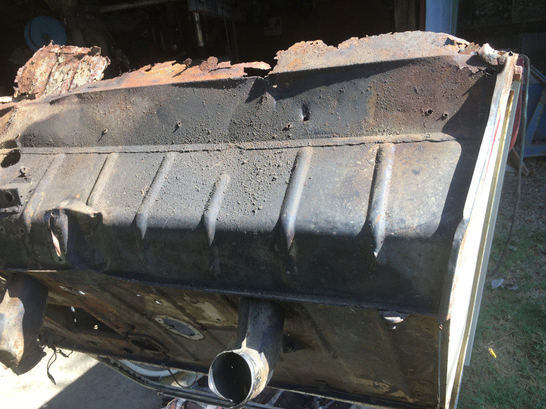Redressage de quelques tôles du châssis un peu tordues et examen de la caisse, après dépose des derniers accessoires (levier de frein à main, charnières de porte avant...)