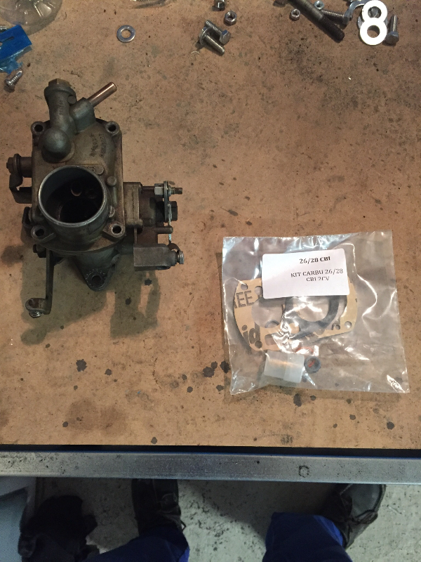 Je me suis ensuite attaqué au carbu. Nettoyage, soufflette, pochette de joints, pré réglage sur l établi de la richesse et butée de papillon avant réglage fin quand ça tournera bien.