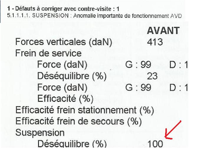 Voilà je viens de passer ma titine en CT et il s'avère que je ressors avec une contre-visite pour une anomalie importante de fonctionnement pour la suspension AV D (efficacité 0%) :pleurs: :pleurs: