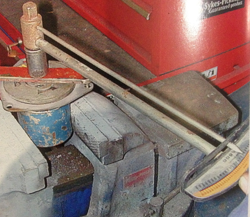 2/ restaurez et Reparer votre 2cv , Il sert l'ecrou de 36 donc il comprime le ressort et mesure avec la clef que le frotteur commence a tourner a 16 N.M donc 1,6 m.Kg pour l'avant.