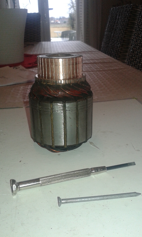 On doit pouvoir refaire l'isolation des bobinage . Pour l'induit je ne suis pas pressé, Je ne vais pas remonter le moteur tout de suite. Je vais d'ailleurs me fabriquer un banc pour tester le moteur. Je mets des photos demain.