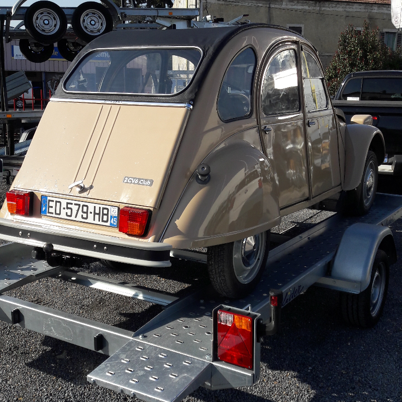 Personnellement, j'utilise un plateau porte voiture de 1000 kg de PTAC, ça suffit largement pour porter ma A qui fait 470 kg, toute mouillée !