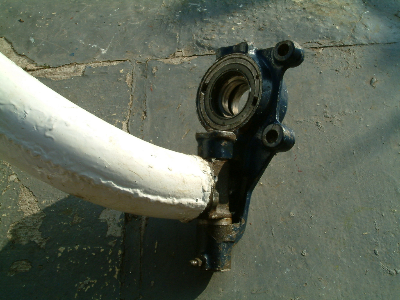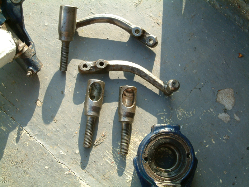 I have since rebuilt from my spares stock pile,another N.Side axle beam, and Hub assembly, I modified the King Pin fitting thru the Axle beam, drilling the beam out with a 17 mm drill, and subsequently fitting King Pin bushes in the Beam as well as the Swivel Hub mounting. So there is still life in this old Jalopy which I have ran and modified since I acquired 53 years ago, it will still run from Liverpool England , down to Monte Carlo, France a distance of 1362 miles in Thirty one hours none stop .. I used to do it from time to time, to the Cannes Film Festival .