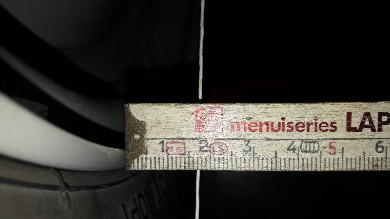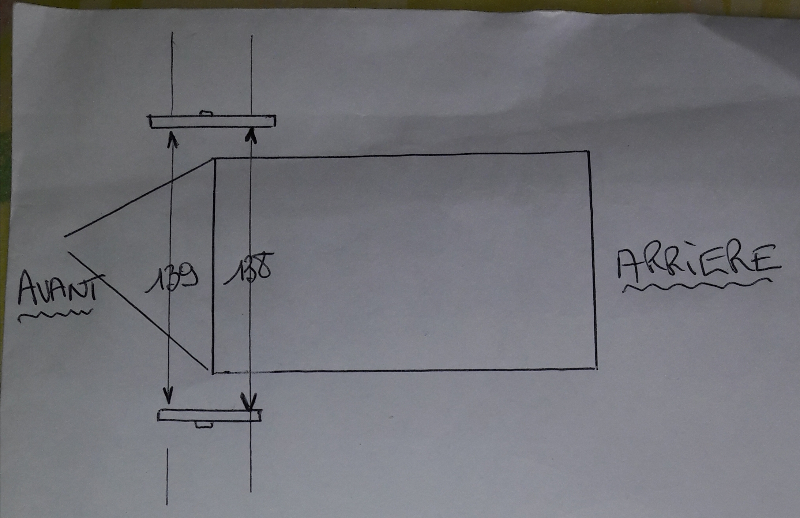 Je vous ai fait un petit croquis qui montre que la mesure bord de jantes arrière est de 1.38 m et bord de jantes avant 1.39 m.