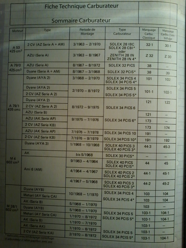 ci joint quelques documents sur les carburateurs de nos deudeuches et sur les caractéristiques moteurs dont taux de compression initial si ça peut intéresser quelqu'un à la dernière colonne de droite , 3 ème document.