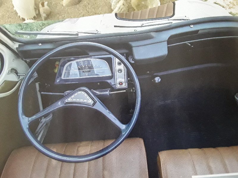 Donc à l'origine, c'est peut-être une 2cv4 qui a eu des accessoires (compteur, sellerie, moteur/boite) échangés au gré des propriétaires et des pièces disponibles, et même Citroën a mis un coup des grands compteurs un coup des petits, un coup deux sièges individuels à l'avant, un coup une banquette...
