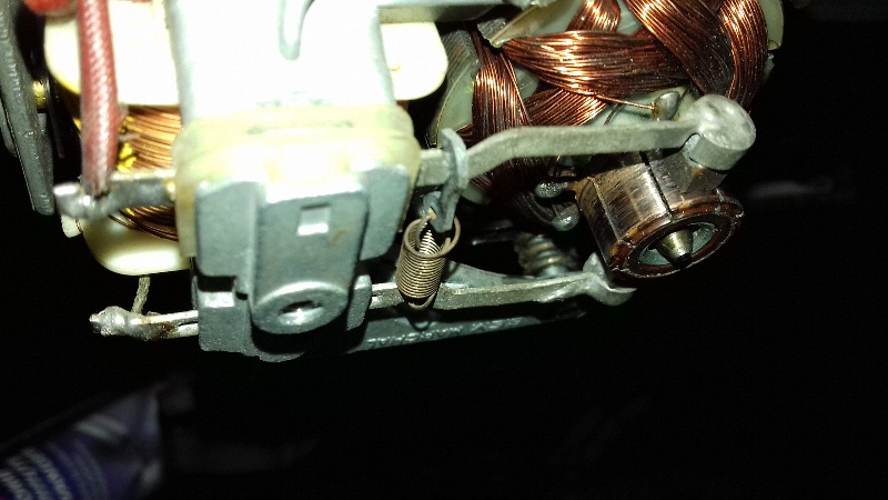 je vous explique donc , le ressort d’arrêt n'etait plus assez fort pour écarter la stator ( partie fixe du moteur) du rotor (partie tournante ou s'appuient les charbons)