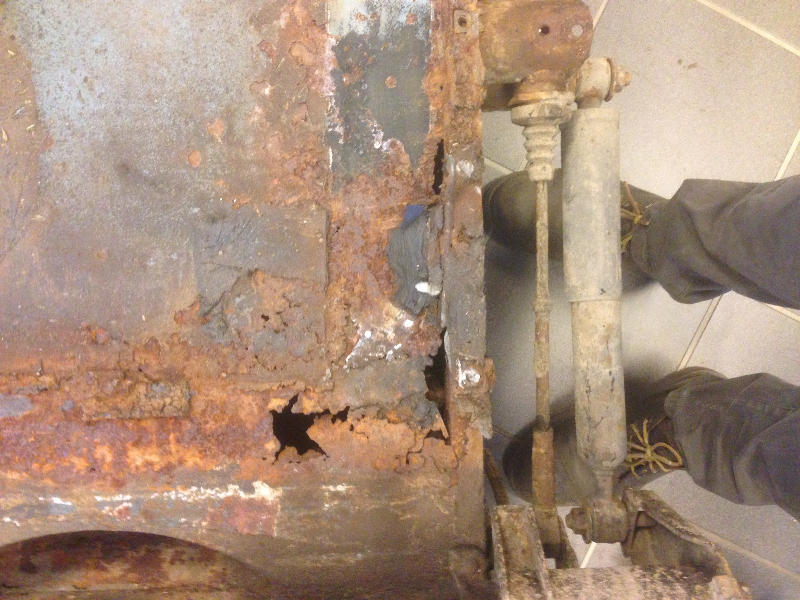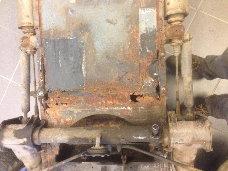 Ci joint les photos de la coque démontée du châssis mais aussi du châssis au niveau des bras oscillants avants...bien rouillés voire perforés. A bientôt