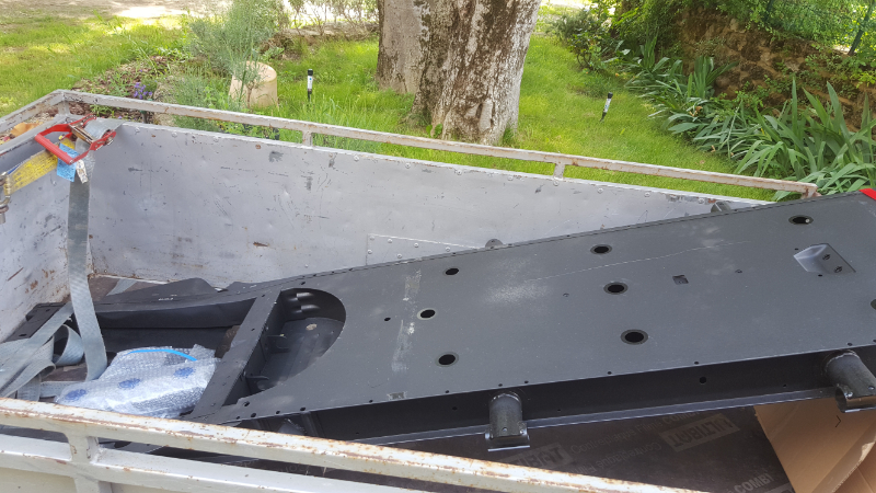 Nouveau chassis sur lequel j'ai du faire souder les branquards et les fixations d'amortisseur arrière.