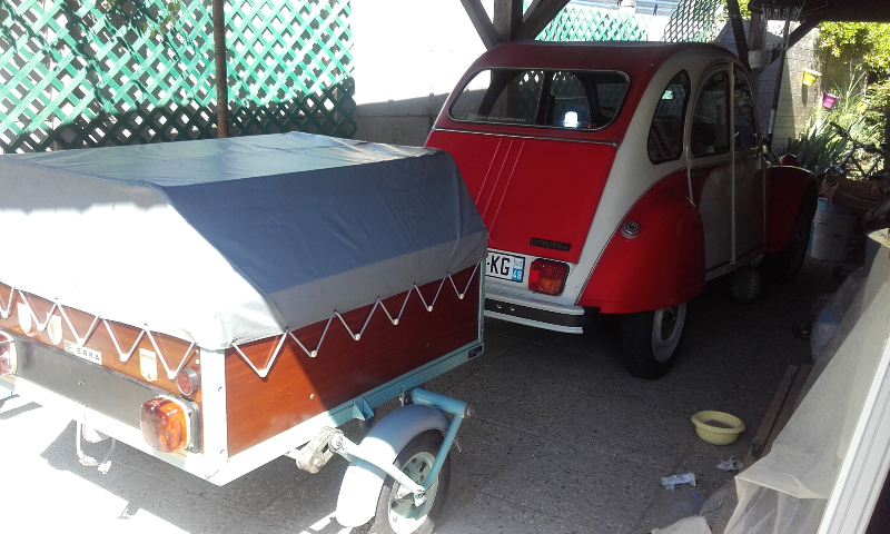 Juste un petit cliché pour vous faire voir titine avec sa remorque que j'ai déniché, une ERKA de 75 avec l'ensemble de l'équipement de camping (armoire) et 1ere main...elle est top, avec ses panneaux vernis et couleur et bâche d'origine