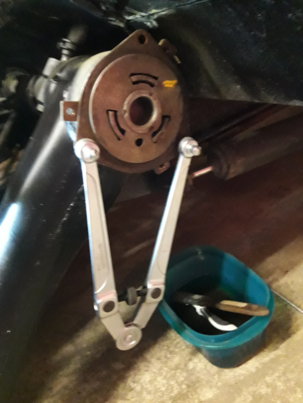 Accessoire de l'époque ( voir viewtopic.php?f=21&t=11575 ) Math2cv a le même équipement .Fredjojo a écrit :bob a ete plus rapide , decolle les 3 oreilles au maillet , l'enorme anneau elastique a l interieur du frotteur bride au niveau des 3 dents ,au remontage avec la clef specifique il faut tapoter aussi pour le rentrer..