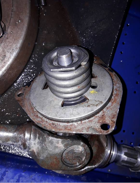 Hello Readers..... Necessity is the Mother of Invention..... I needed to remove my Front Axle suspension Springs units Donkeys years ago, I was puzzled how to remove them, eventually I manufactured my own Tool Spanner, " Half an hour to make it " see photographs attached, it fits into the center Round hole and the Pin Peg into the 5. 16th small Hole, then just press downwards to release the tension and pull out the unit from the Axle..