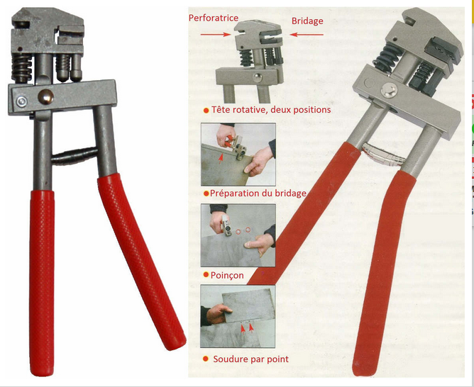 Beaucoup de pince ont également un emporte pièce qui permet de perforer la tôle sans utiliser une perçeuse.