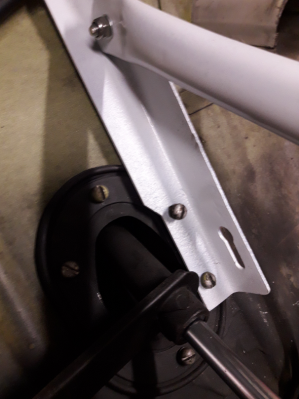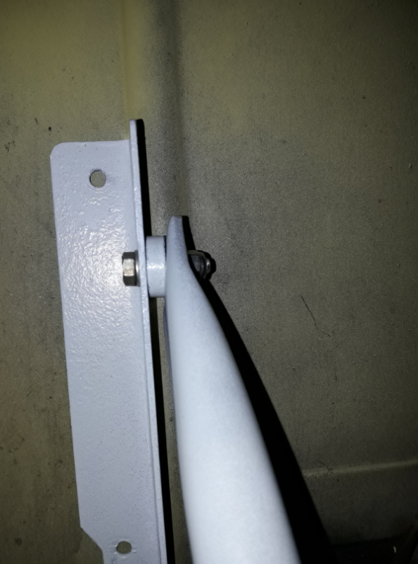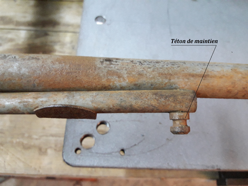 La béquille de maintient levé se prend dans une encoche sur la cornière de fixation du support sur le tablier.