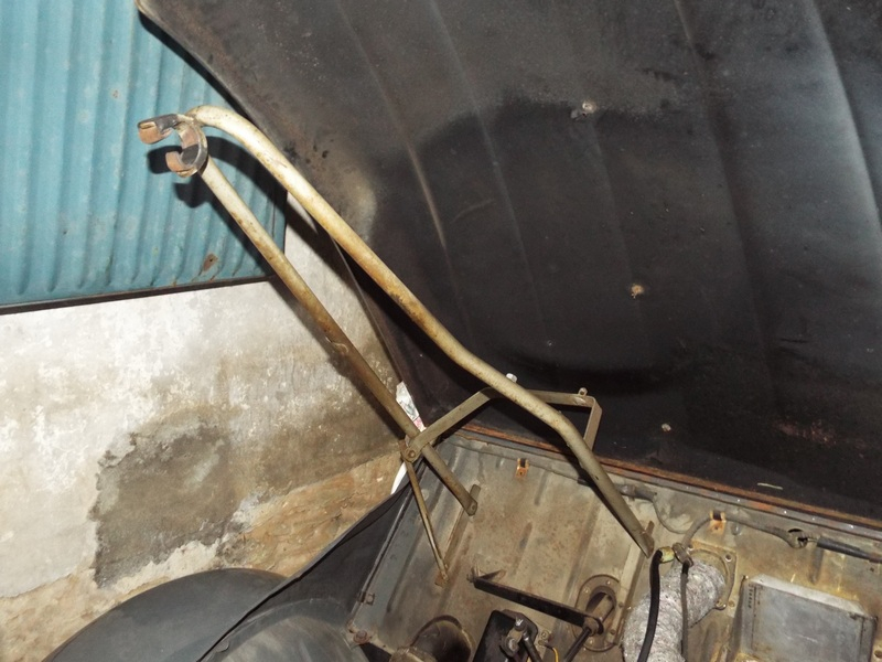 La béquille de maintient levé se prend dans une encoche sur la cornière de fixation du support sur le tablier.