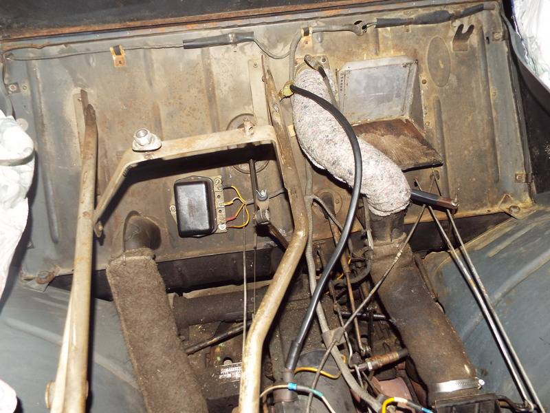 La photo du support existe en début de topic envoyée par Bob : Le support comme je te le disais est fixé sur deux écrous qui maintiennent le levier de vitesse, c'est pour cette raison que la cornière de gauche ne se trouve pas à la même hauteur que la cornière de droite ---> 2cms d'écart ... et que la patte est un peu décalée vers la gauche et pas au dessus de la potence verticale (à mon avis :???: )