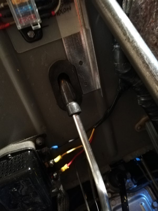 Si je pose la cornière contre le caoutchouc du passage de levier de vitesse comme on voit sur la photo précédente, la cornière côté extérieur est bien à 105 mm du haut, mais elle est à 155 mm du bord de la carrosserie :???: :