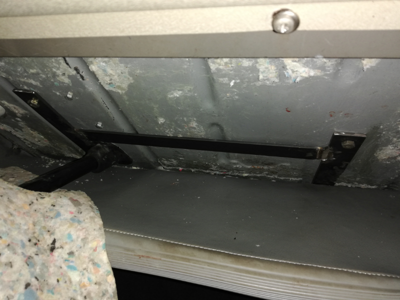 La cornière de gauche quand elle est fixée sur les vis du système de guidage du levier de vitesse est plus à droite que ce que tu montres sur ta voiture (plus proche du levier). De ce fait, la cornière de droite doit tomber à coté d'une nervure, ou bien le tablier de ta voiture n'est pas le même que sur celles de 1966, comme dit plus haut.