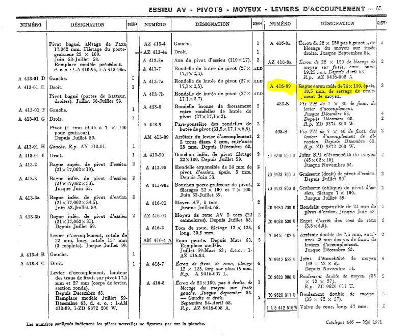 Filetage des moyeux de roues avant.2 cv