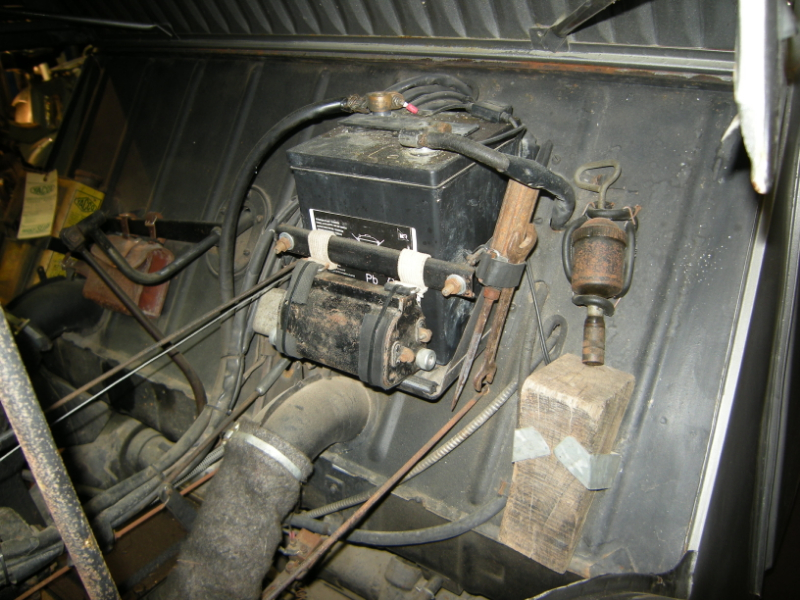 Sur la 2cv A de 51 , dans le compartiment moteur il y a bidon trousse d’outillage , coté batterie je pense a une bobine ,