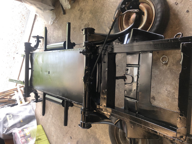 tôle supérieur du châssis remplacé , jeu des bras refait , frein démonter et kit commandé, ponçage complet du châssis et des trains , peinture certainement milieu de semaine.
