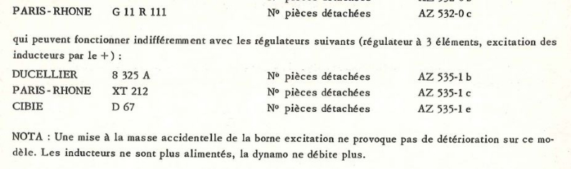 Fredjojo a écrit :1/Peux tu nous dire quel modèle de régulateur avais tu lorsque cela fonctionnait , voir liste en photo , pour rappel la ref est gravé soit sous les contacts dyn exc etc soit sur la patte de fixation derrière .