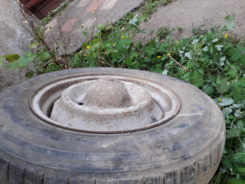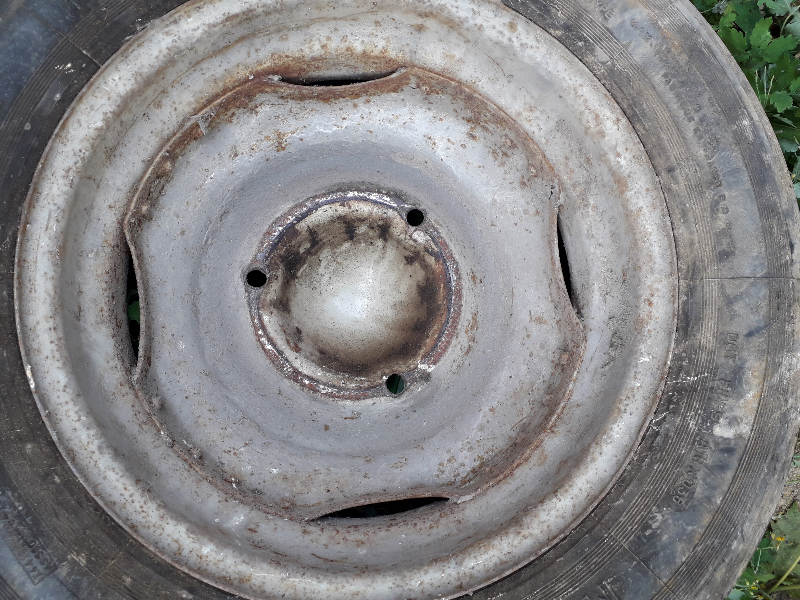 J'ai récupérée cette roue hier à la déchetterie au milieu d'un tas de vieux pneus Michelin 125/15 - ce sont d’ailleurs ces pneus fins qui dénotaient parmi les autres qui ont attiré mon attention.
