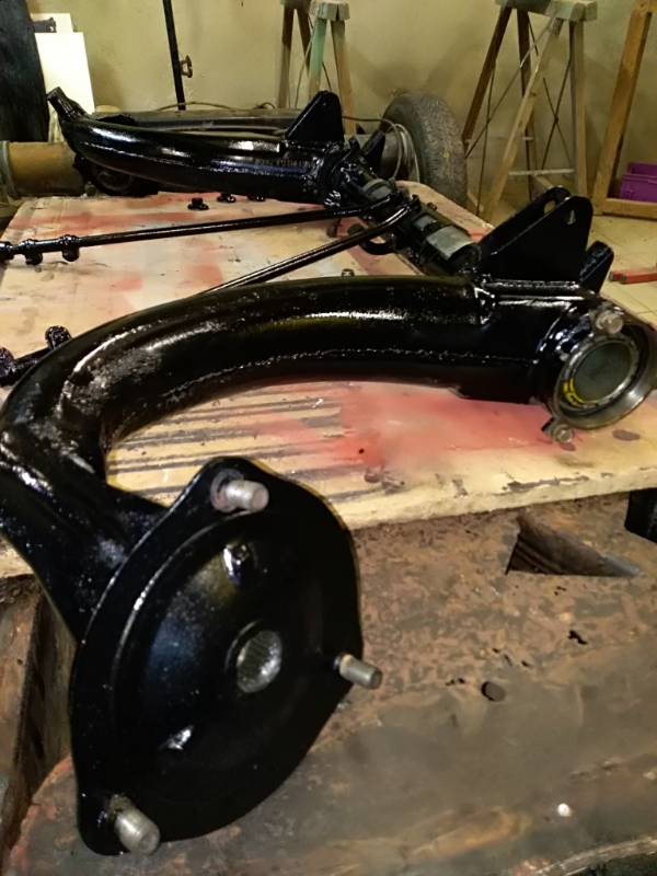 Après avoir nettoyer, dégraisser et dérouiller les essieux de ma 2CV, je les ai repeins en quartes couches :