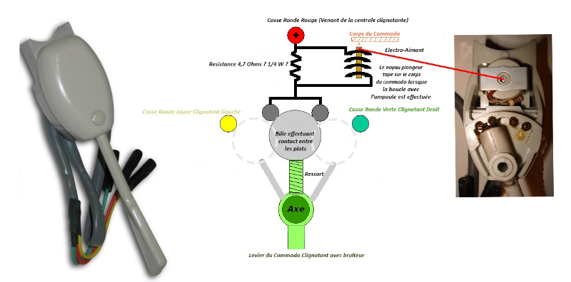 Pas encore trouvé de commodo hs a autopsier mais dans le principe c'est ca ,