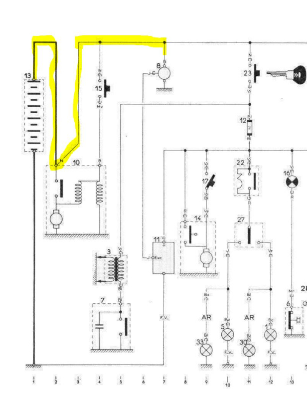 de 68 a 70 il existe un montage avec alternateur avec 2 Sorties supplementaire connecte a un bloc relais (15)dans le tableau de bord voir 2eme schema si je retrouve le lien qui explique ce module de controle de charge je le rajouterais = https://minute-auto.fr/guide/mecanique/ ... lectriques Explication du relais de charge sur cette page du 2eme schema et alternateur a 2 sorties supp