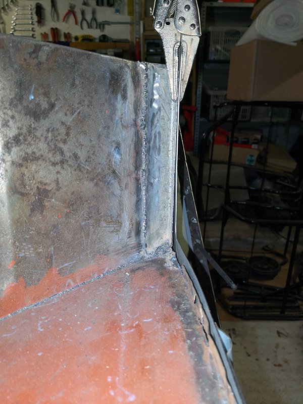 C'est pas bien meulé, je remettrais un coup de 80 sur la soudure. Ajustement pour mettre le bas de caisse :