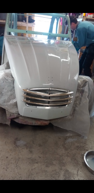 Je suis David, j'ai 52 ans je suis né dans le Nord de la France et je suis électromécanicien, j'ai fait mon service militaire à Berlin et trouver la femme de ma vie et sans regret je suis resté dans cette ville multiculturelle. Je travaille depuis plus de 3 ans dans une société qui modernise et répare les ascenseurs. La passion des voitures de collection est venu en aidant un ami français à réparer sa Traction ensuite une R4 et le fameux tube Citroën HY. Le véhicule que j'aurais bien aimé avoir est une méhari malheureusement en Allemagne elle n'a pas été homologuée à cause de sa carrosserie inflammable. Plus tard je me suis intéressé aux 2CV et en 2013 j'en ai trouvé une qui était dans un état désastreux non roulante, année 1969 de fabrication belge une AZA, le moteur 425 cm³ 16 chevaux( dynamo 6 volts derrière l'hélice) avec des clignotants rectangulaires à l'avant et des feux arrière de fabrication ULO, réf.: k11501. Ce modèle etait spécifique pour l'Allemagne et la suisse. J'ai démontré le moteur et boite de vitesse complètement, rôder les soupapes changer touts les joints, démarrage au quart de tour, a la boite changement de touts les roulements et joints, reglage comme il faut, les vitesses passent bien. Le châssis était à l'avant pourri et aussi déformé par un accident, j'ai changé le châssis, le bas de caisse, bas du coffre et les ailes Intérieurs arrière. Le plus difficile pour moi en ce moment c'est la préparation de la carrosserie pour la peinture, le ponçage, enduit, de trouver les défauts et de rectifier. Les Allemands disent pour la 2CV " Ente"qui veut dire canard.