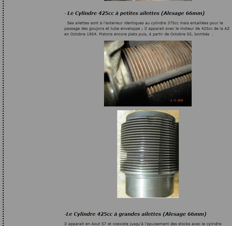 Mon moteur a des ailettes de 375 cc qui ont été montées sur les 425 cc à partir d' Octobre 54 et jusqu'en août 1957. Donc ce moteur est d'avant 58.
