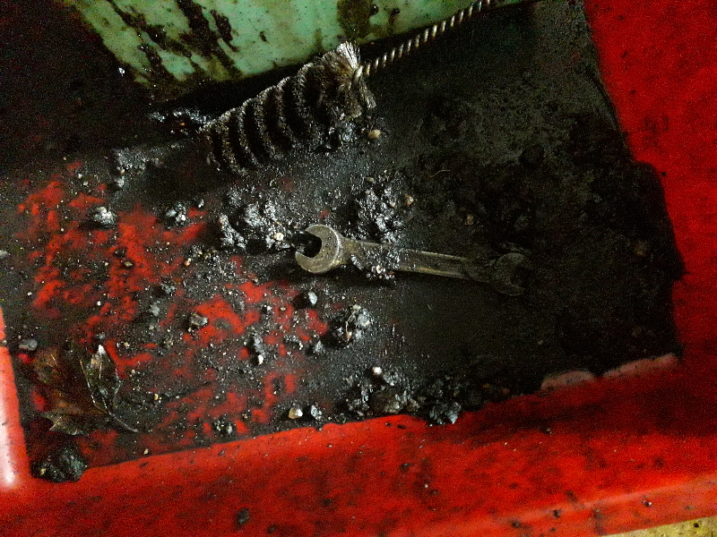 Le grand nettoyage continu ,j'ai même trouvé une clé ancienne de 10 Facom dans la traverse avant avec beaucoup de graisse et de cailloux pas facile à extraire par la trappe ...