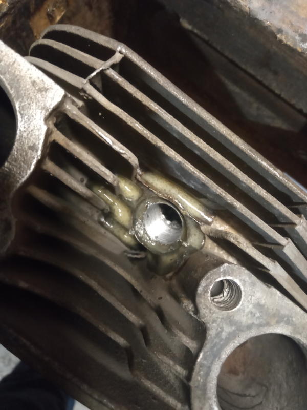 Ce soir j'ai fait un essai pour réparer le filetage de bougie.